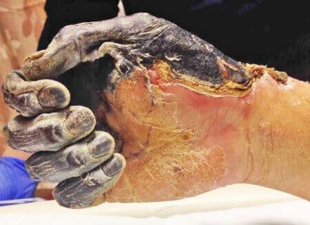 3. Efectele artritei periei. După cum știți, este imposibil să oferiţi ajutor atunci, când procesul inflamator a dobândit deja impuls și a dus la sepsis. Pacientului a fost amputată peria și o parte din antebraț, dar nici asta nu l-a putut salva: infecția sa răspândit pe tot corpul și omul a murit după șase luni de tratament intensiv.